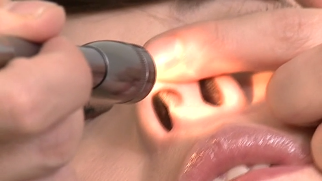 ペンライトによる鼻穴観察によりびっしり生えた鼻毛がバッチリと確認できます!